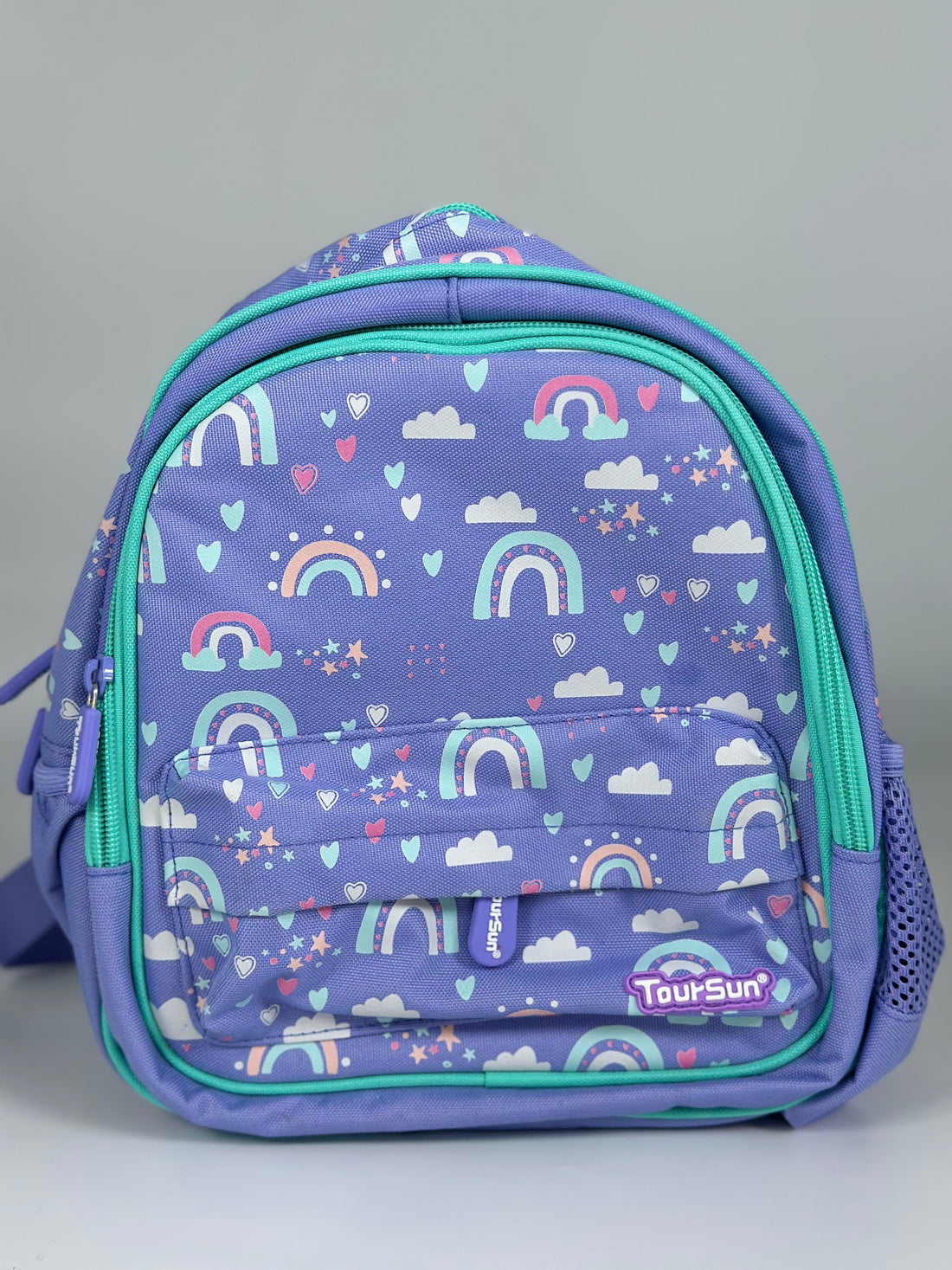 Organiza tus pertenencias con esta mochila de diseño encantador. Su estampado de arcoíris y nubes...