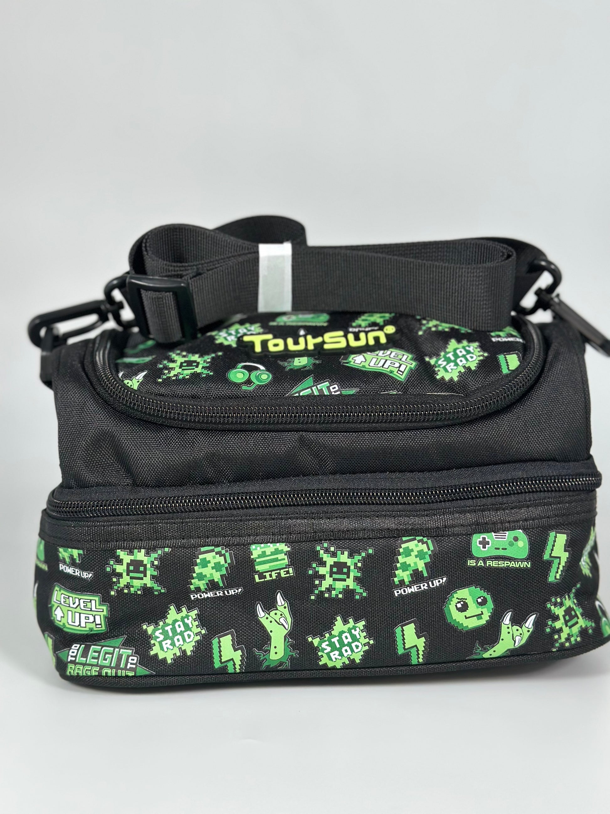 Lleva tus comidas y snacks al siguiente nivel con esta lonchera térmica de diseño gamer. Cuenta con doble compartimento para separar tus alimentos fríos y calientes, y un material aislante que los mantiene frescos por más tiempo. Ideal para el colegio, la universidad o el trabajo, es un accesorio práctico y lleno de estilo para los entusiastas de los videojuegos.