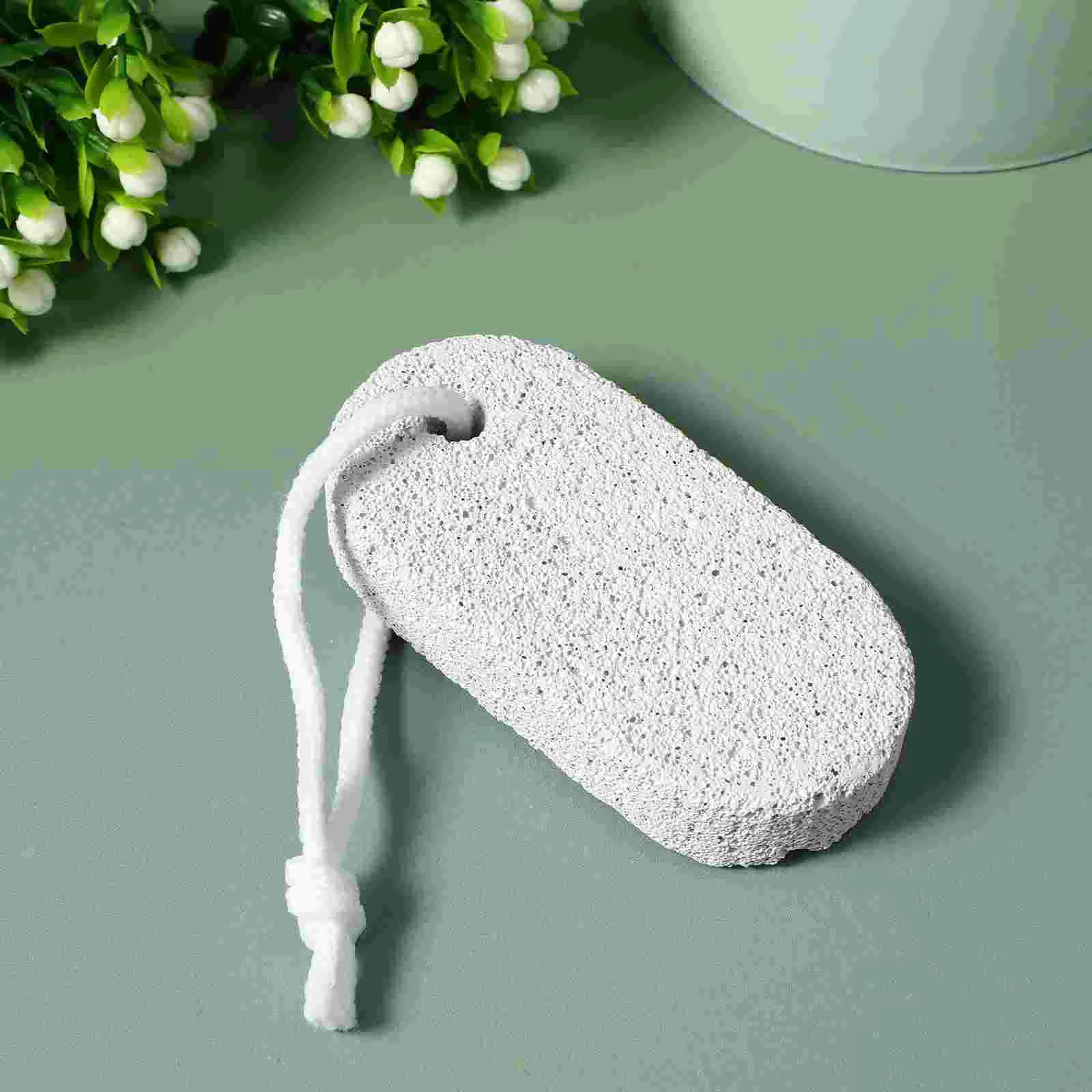 Una piedra pómez natural de color gris claro, utilizada para el cuidado y la exfoliación de la piel, especialmente en los pies. Es una herramienta efectiva para eliminar callosidades y piel áspera, dejando la piel suave.