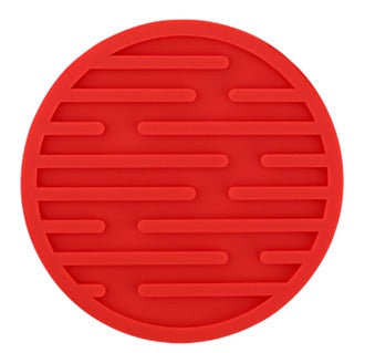 Un accesorio de cocina o mesa funcional y minimalista, diseñado para proteger las superficies del calor o la humedad. Está fabricado en silicona duradera y viene en presentaciones en colores negro y rojo